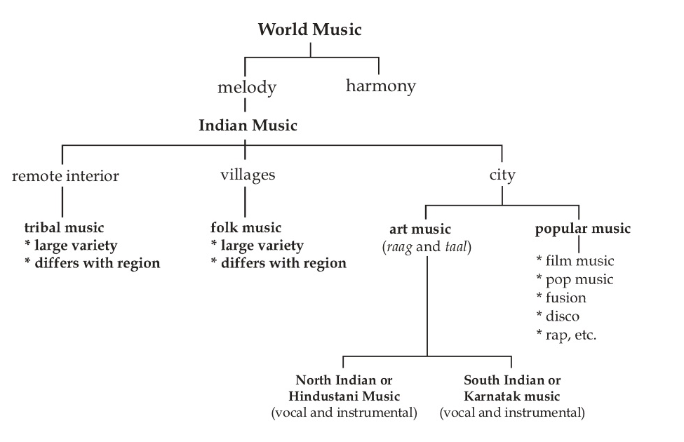 インド音楽のヴァラエティは、非常に豊富だ。プリミティブ、トライバル、フォークから、アートミュージックまで、口承伝達により受け継がれてきた音楽形式が数多く存在する。
