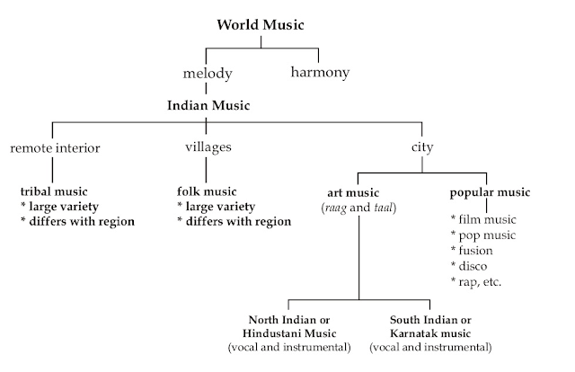 「ラーグ」と「言葉」の関係性の重要度により、その音楽形式が古典、ライトクラシカル、またはライトミュージックという風に分類される。