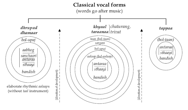 インド古典音楽は、「純粋音楽」である。このガート(ラーグ音楽の音楽形式、ジャンル)の目的は、音楽の概念、抽象的な音のアイディアである、「ラーグを表現すること」である。